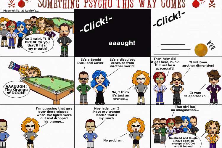 The “Something Psycho This Way Comes” page is up in the Psychosix Section. Most of the Something Psycho Comics were done by Fritters. I put together the last one in attempt to cheer her up once.