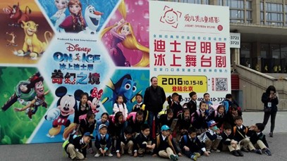 Today, the last day I will write about this week, even though it is Sunday again, we went to see Disney on Ice. Nearly the whole class went. We were joined by my family and our Director, Ms. Peng’s youngest daughter as well. It was awesome. We sang our songs on the bus to practice, when we got there, there was 3 layers of security. We had people check our tickets to get into the courtyard of the arena, another group of people verifying our tickets were real just to go up the stairs, (with little scanners), then someone receiving the tickets at the top of the stairs where we went through metal detectors and x-ray machines. At this point all of us found a place to eat. We found some chairs to sit at and pulled out our lunches. It’s strange because at arenas like this in Canada and America there is a concession stand or food booths. We didn’t see any of those. We saw a lot of Disney toys being sold (At 5 times regular store price) but no food or drink sold. When we got in, our seat were up far away from the ice, but shortly after the show started some people from the arena invited our class to move much closer to the ice to see better, that was nice of them.