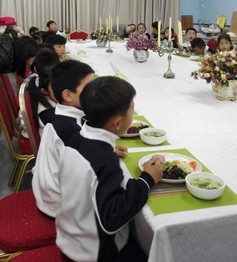 On Friday we had our 2nd Parent’s Lunch. A delicious batch of Halloween themed Dumplings was made. They had Orange, and green, and white and pink dumplings all prepared for the children and soup and vegetables as well. The parents served the children as they sat, which was really sweet of them.