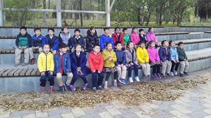 上周一我们带着孩子们去了学校附近的常营公园并且在那里上了一节很放松的户外课。在公园里,我们诵读了很多学过的诗歌。在钱老师的教育下,孩子们学习了大学,孩子们诵读时的场景真是蔚为壮观。在美术课之前,孩子们还有机会四周漫步,欣赏公园美景。教美术课的曹老师和谷老师,在地面上为孩子们精心准备了一棵”粉笔树”,要求孩子们用粉笔画出树叶,动物,树枝和其他生命物体来装点这棵树。孩子们度过了非常快乐的时光。