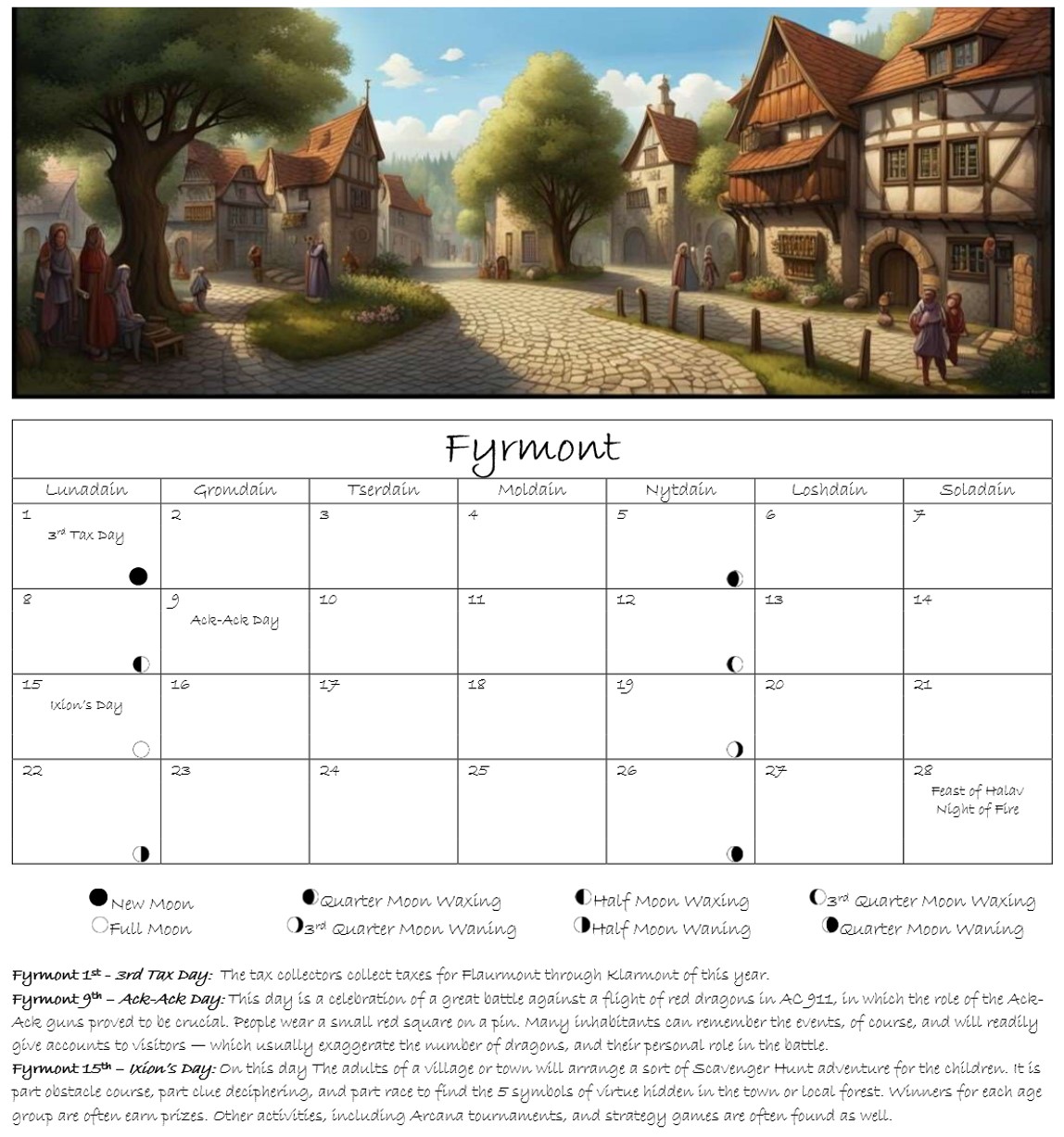 More Notes: Fyrmont is the 8th month of the Karameikos Year, and the last month of Summer.